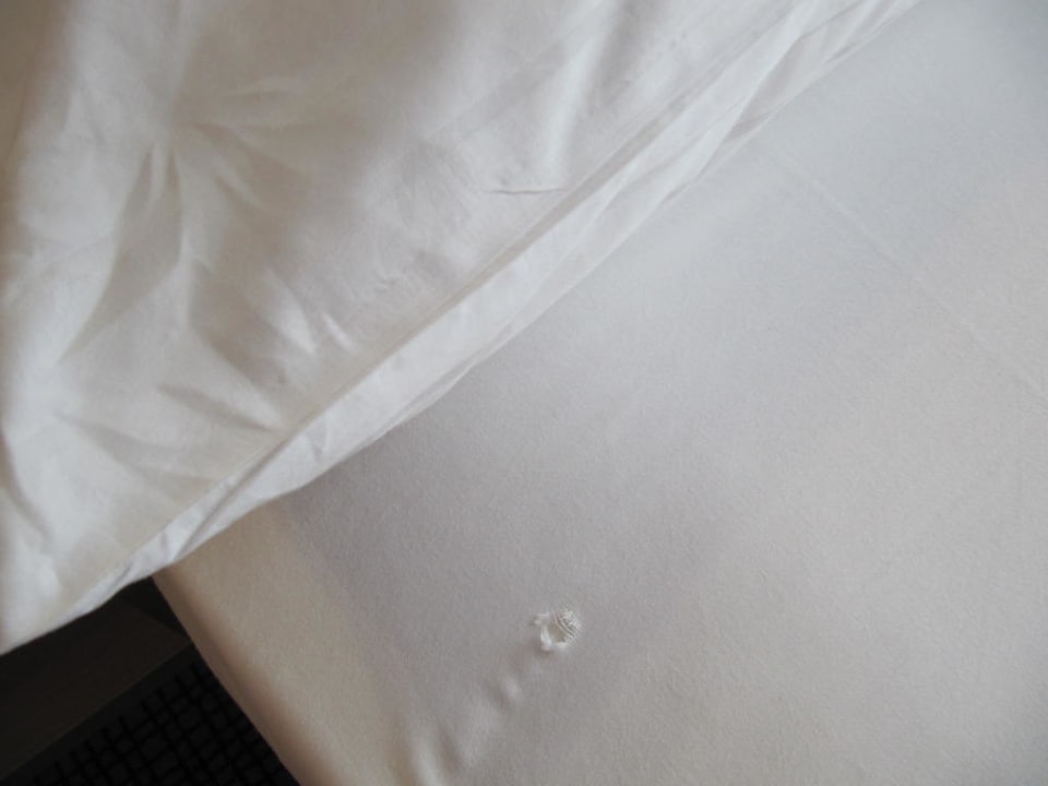 Loch in der frischen Bettwäsche