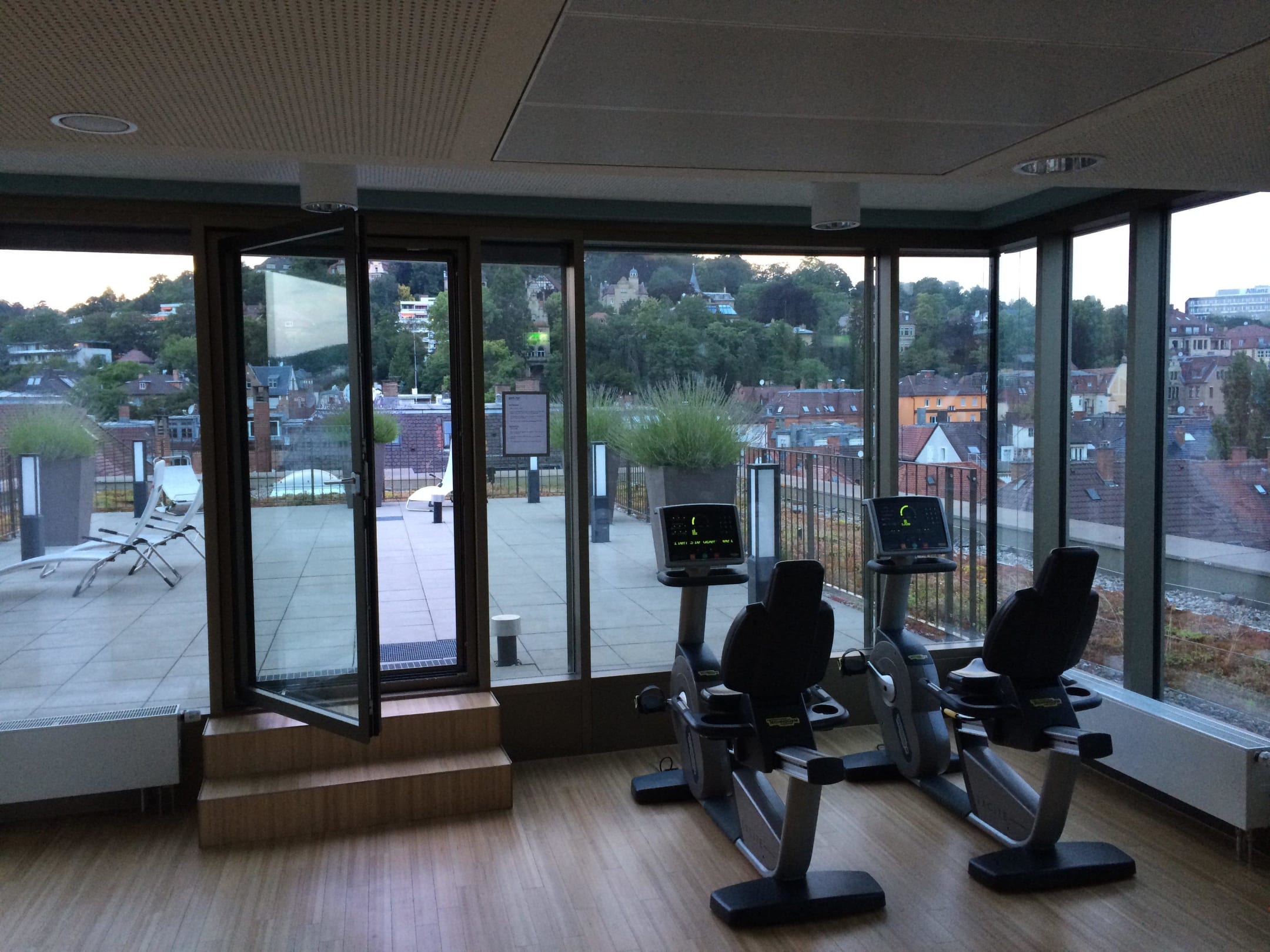 Blick vom Gym auf die Dachterrasse