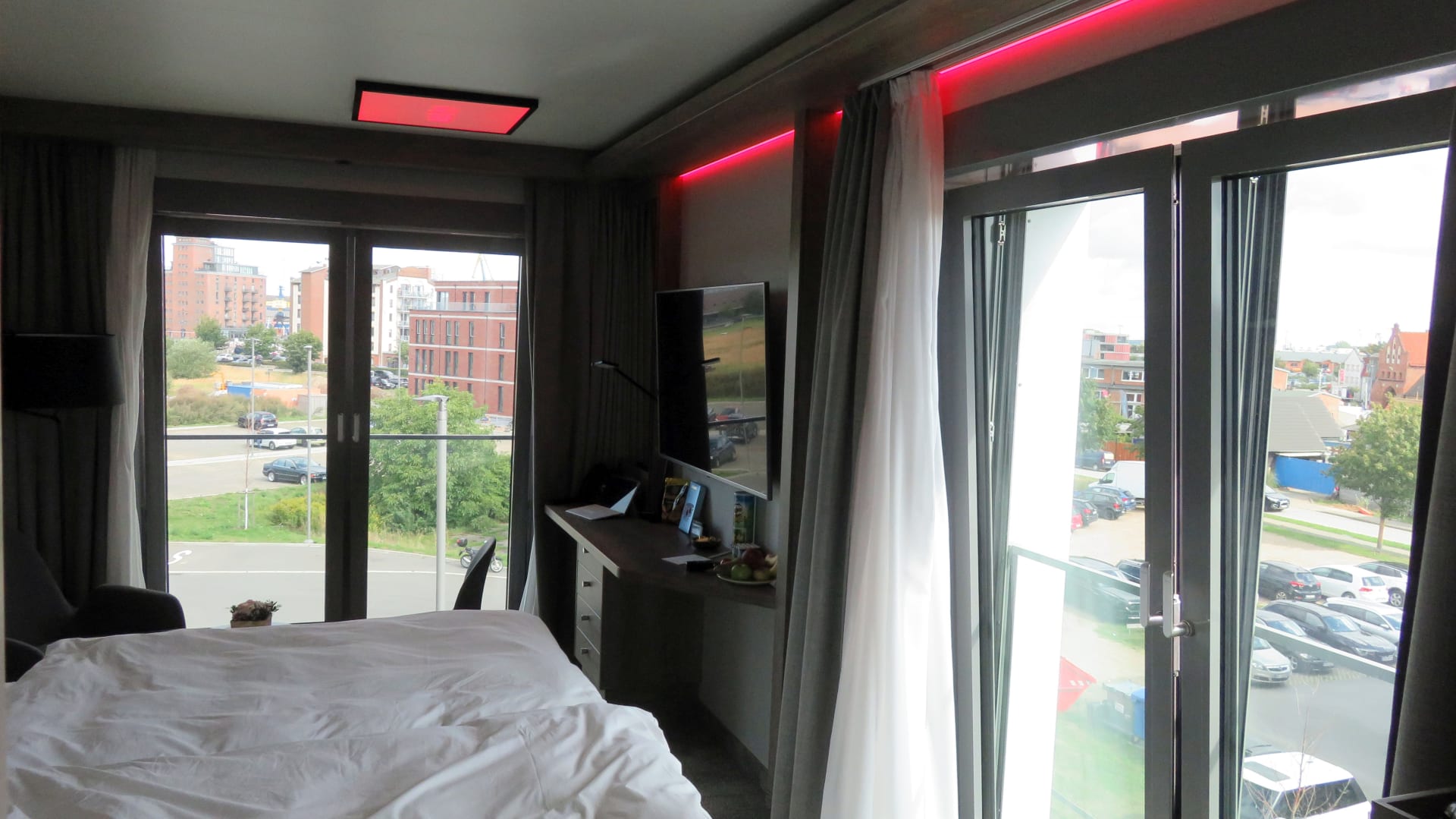 Eckzimmer mit 2 Fenstern und bunter Beleuchtung