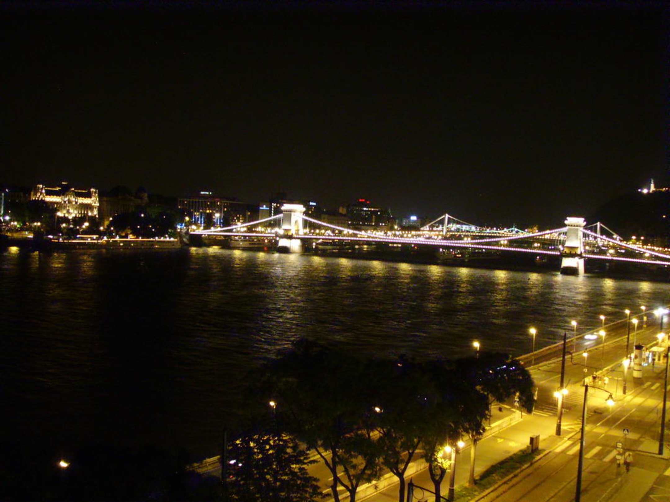 Aussicht bei Nacht nach rechts auf die Kettenbrücke