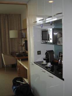 Küche in einem Executive Studio mit Themse-Blick.