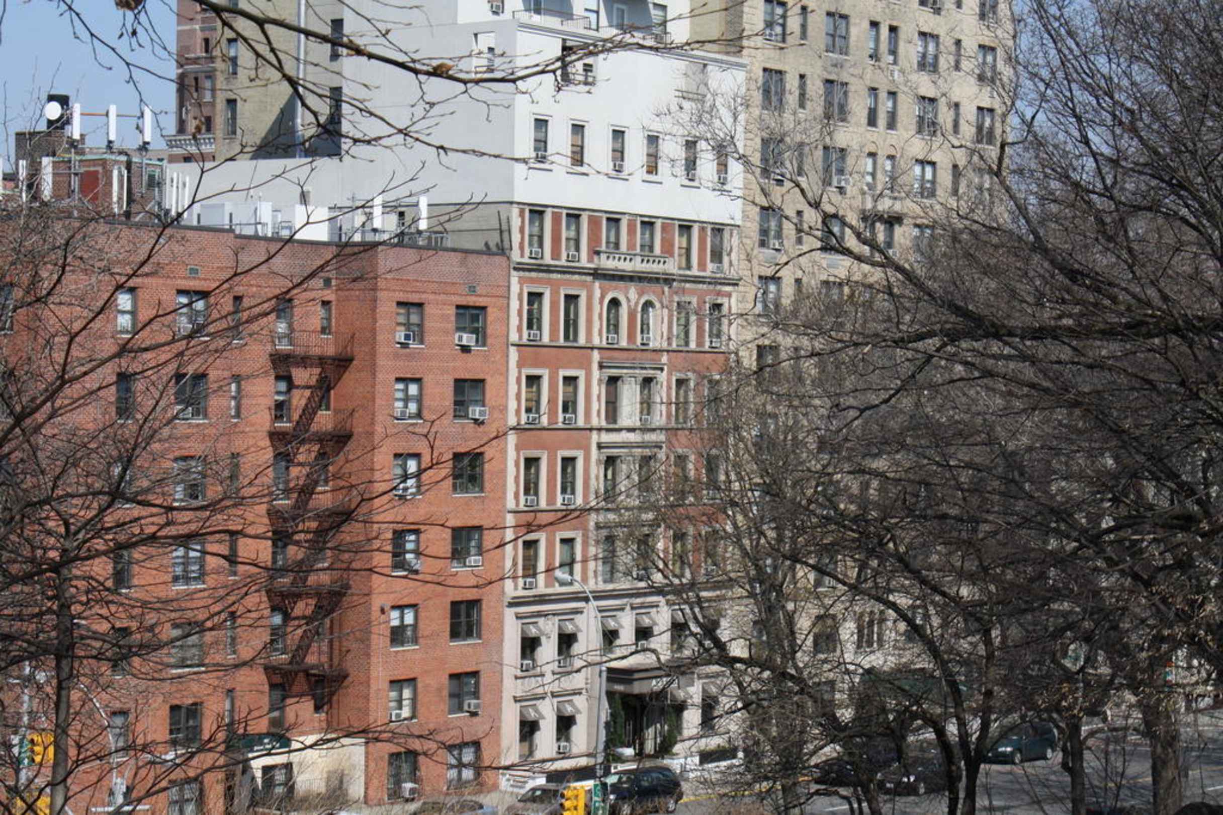 Hotel von Central Park ausVom. Treppeneingang des Central Park aus auf das Hotel geblickt