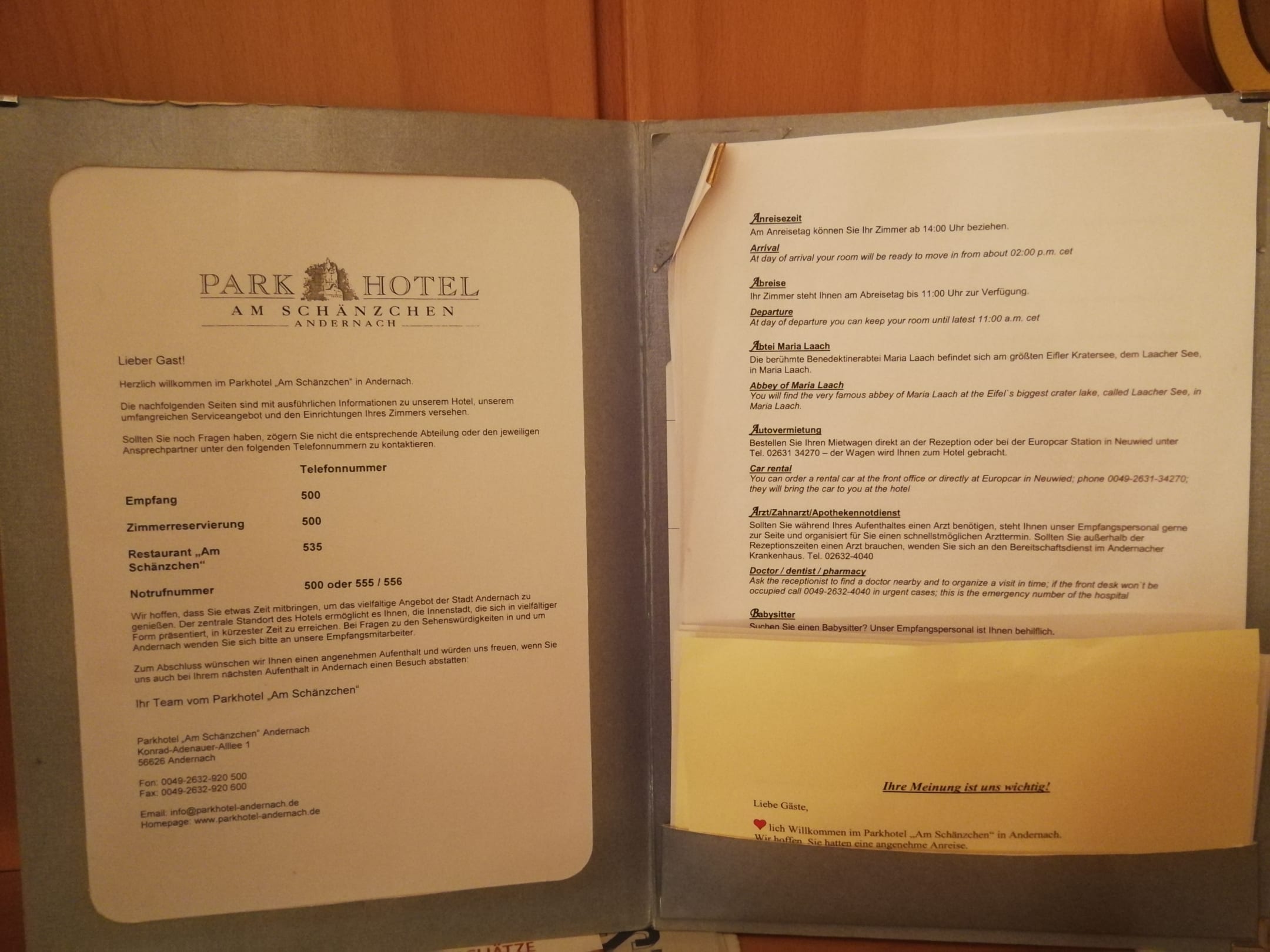 Hotel-Informationen mit Eselsohren