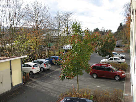 Zimmeraussicht auf dem Parkplatz
