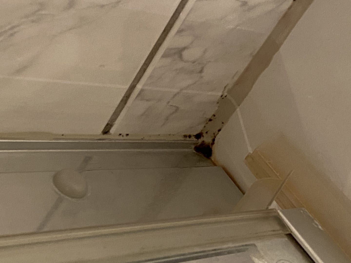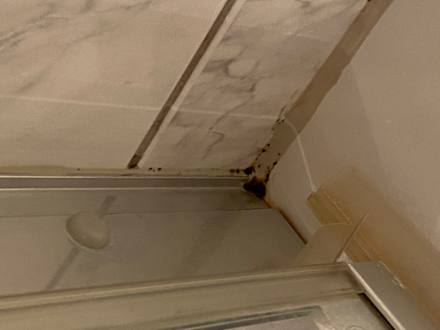 Schwarzer Schimmel in der Dusche.