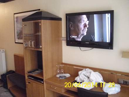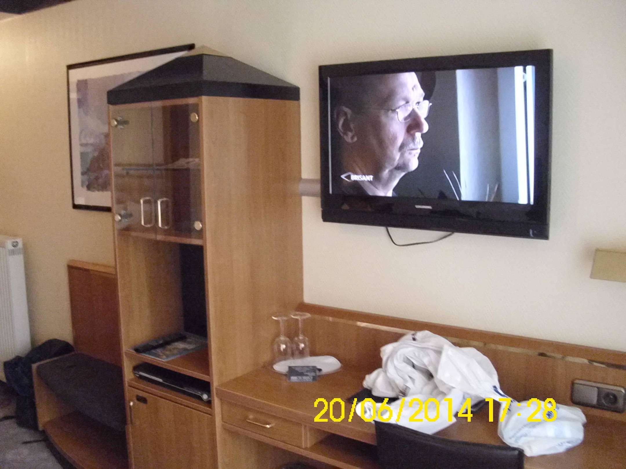 Ansicht zum Glasschrank und zum TV