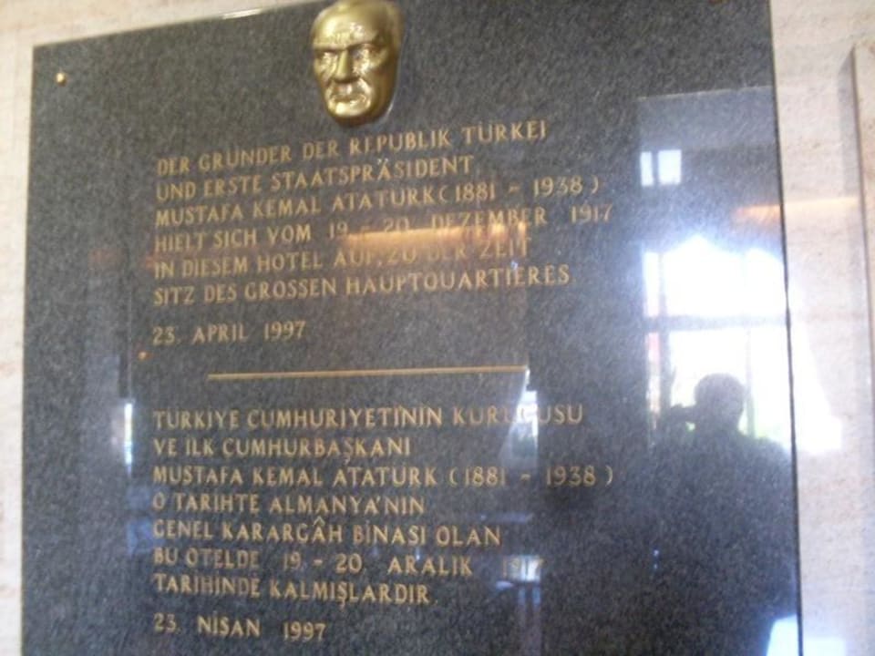 Gedenktafel in der Lobby für Kemal Atatürk, den ersten Staatspräsidenten der Republik Türkei, der hier 1917 weilte und im Hotel sein damaliges Hauptquartier hatte.