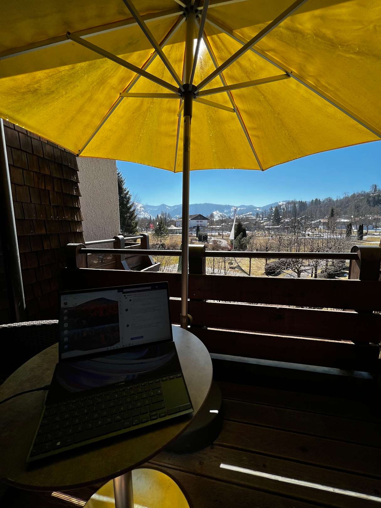 Bei strahlenden Sonnenschein auf dem Balkon sitzen und arbeiten!