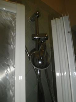 DuscheDie Dusche mußte jedesmal erst aufgeklappt werden, da das Bad zu klein war. Nach dem duschen Wasseralarm im Bad :(