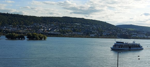 Schöner Ausblick auf den Rhein und im Hintergrund Bingen
