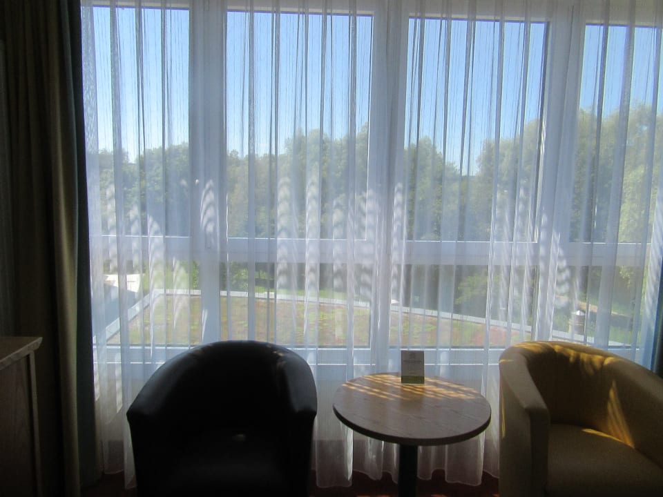 Blick aus dem Fenster in den Park.