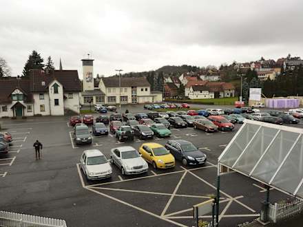 Vor dem Hotel der Parkplatz und die Feuerwache.