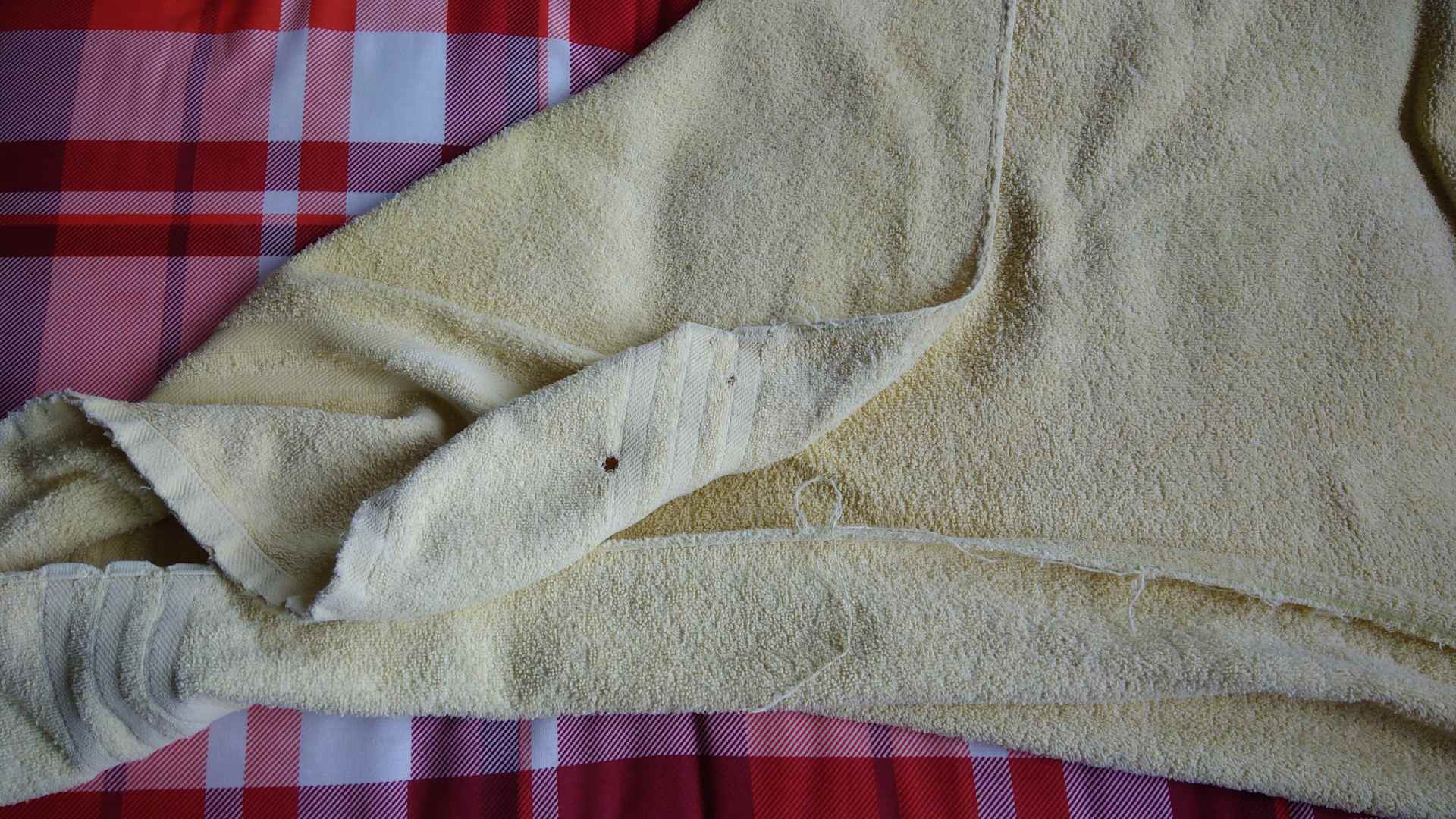 verschlissene Handtücher im Saunabereich