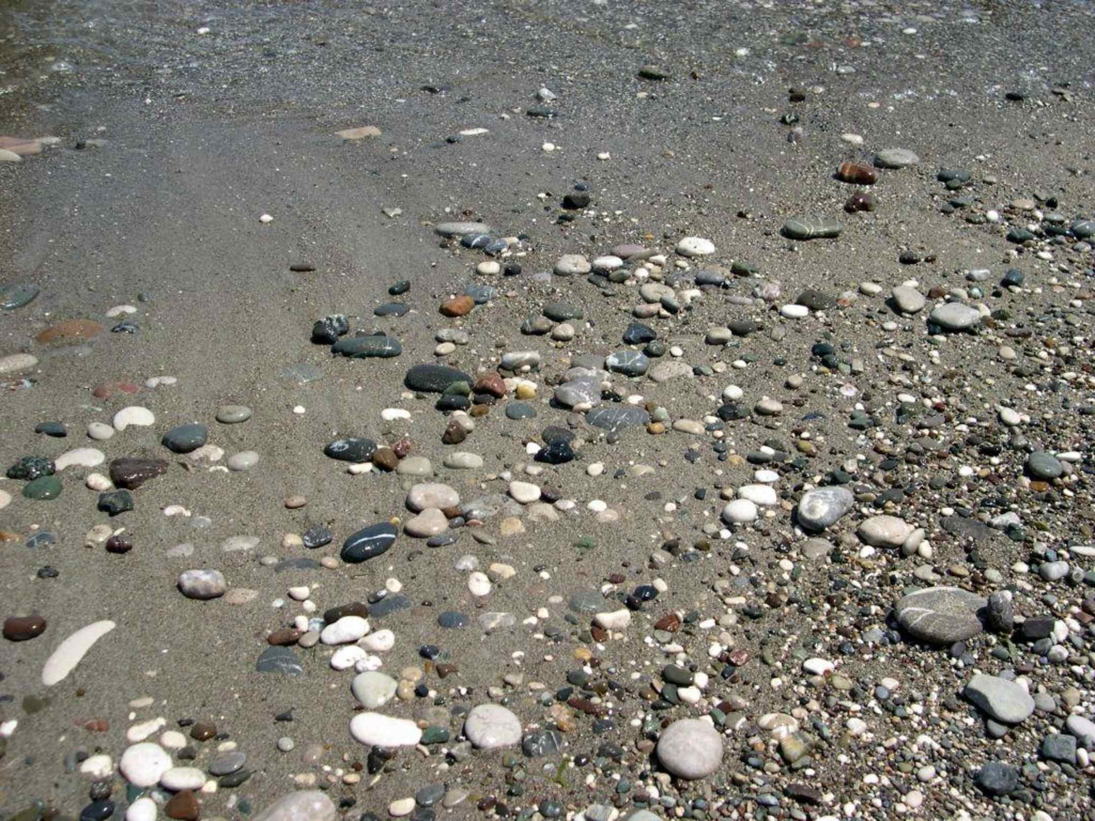 Viele verschiedene Steine in Form und Farbe sind am Strand zu finden.