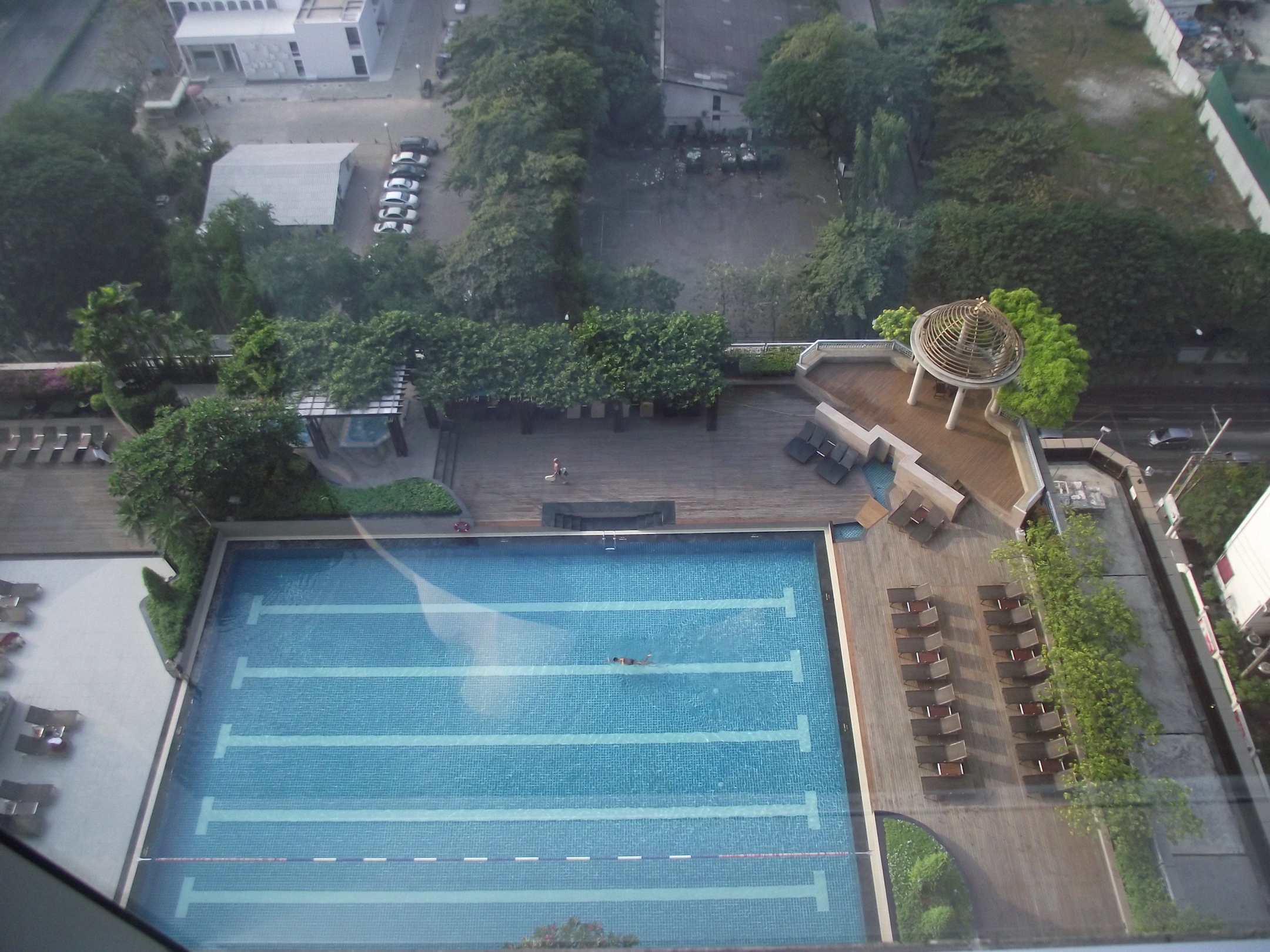 Blick aus dem Fenster zum Pool