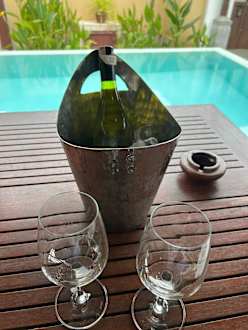 Flasche Wein zur Begrüßung