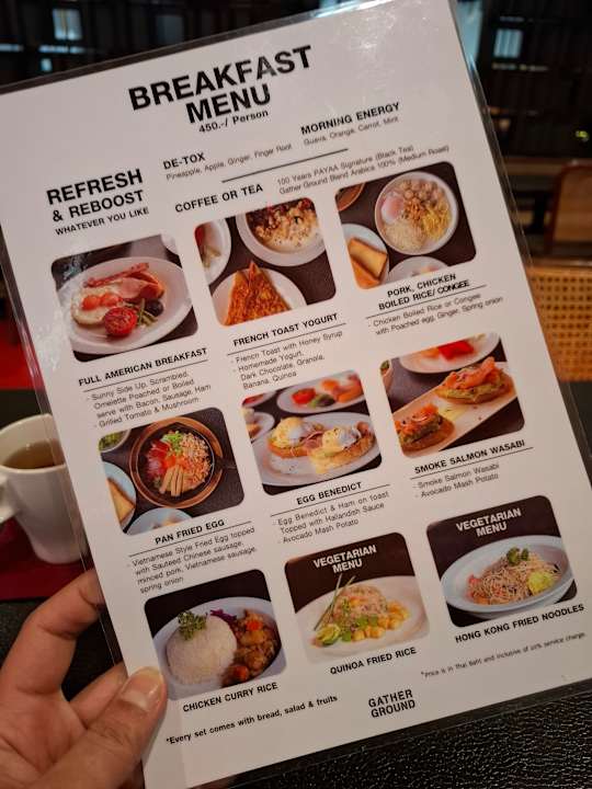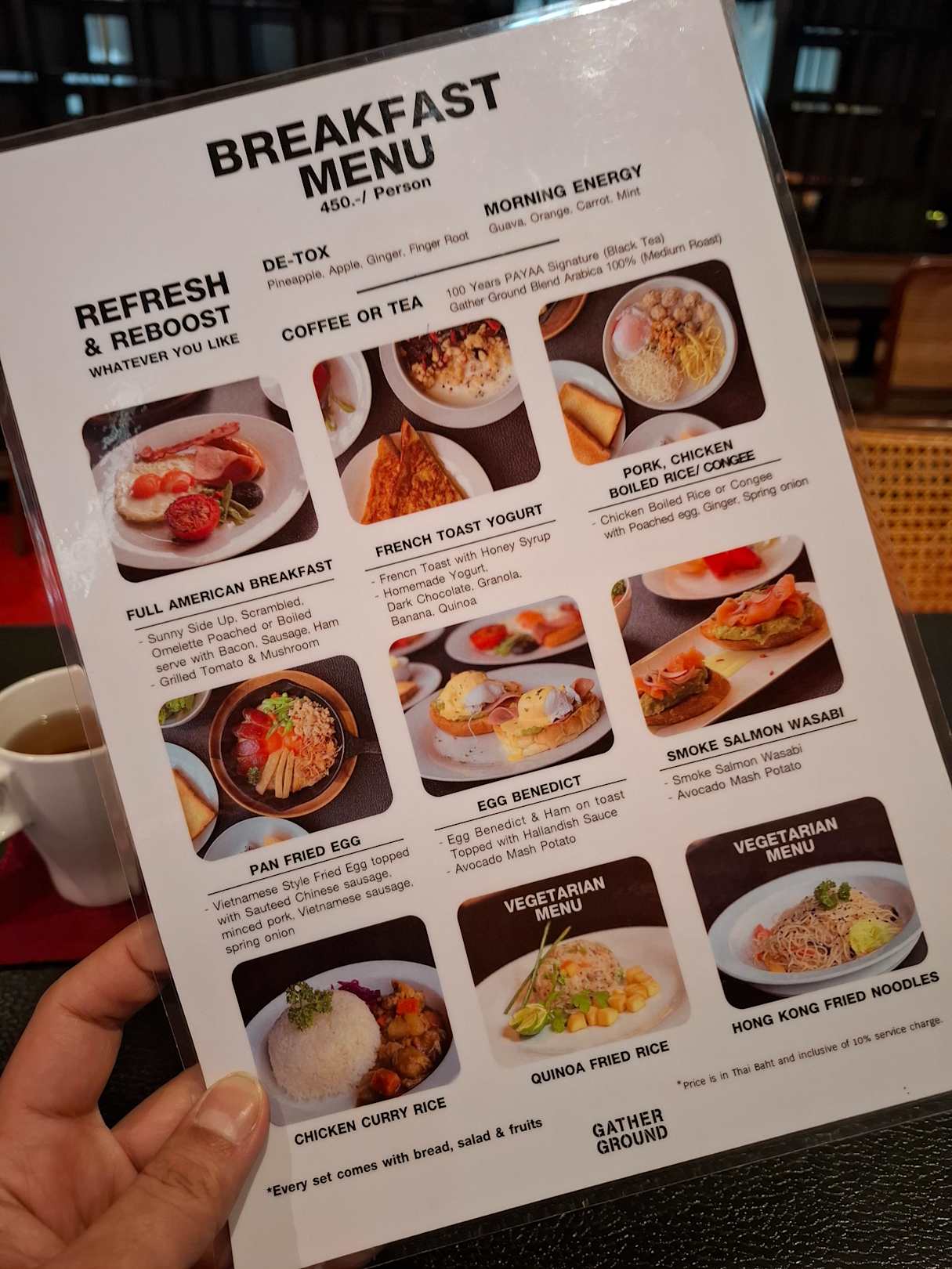 Speisekarte Frühstück. Es konnte ohne Limit bestellt werden.