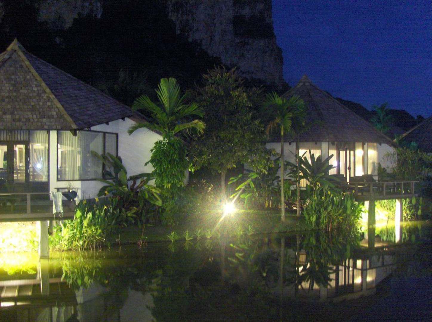 Bungalowanlage bei Nacht