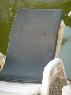 Liege mit Müll im Hintergrund