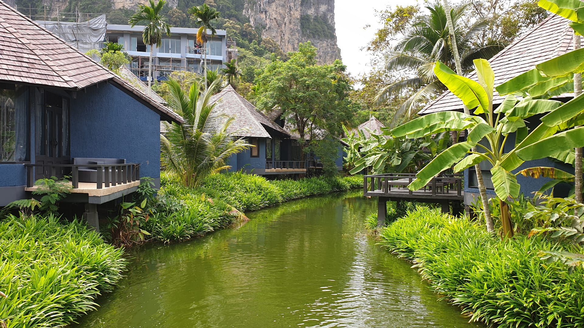 Fluss zwischen den Bungalows
