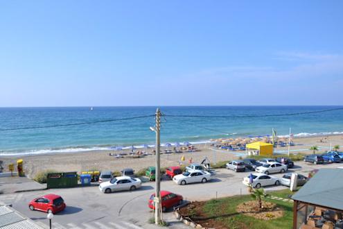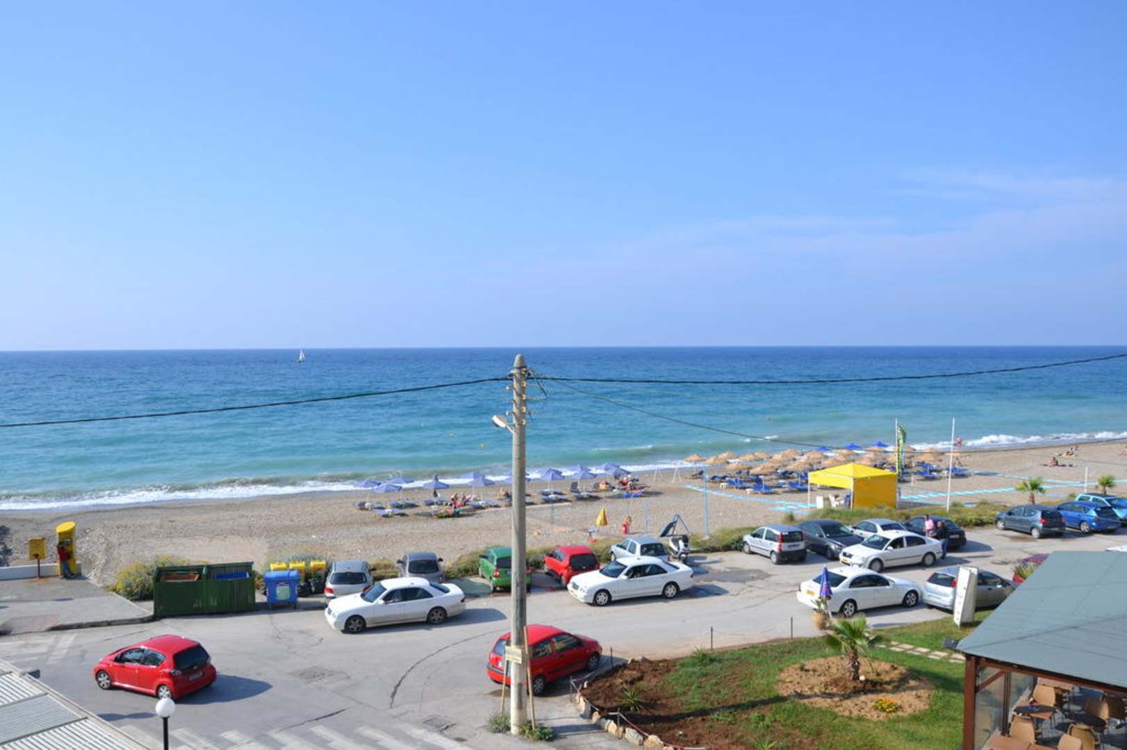 Seitlicher Meerblick, Strandansicht mit Taxistand.