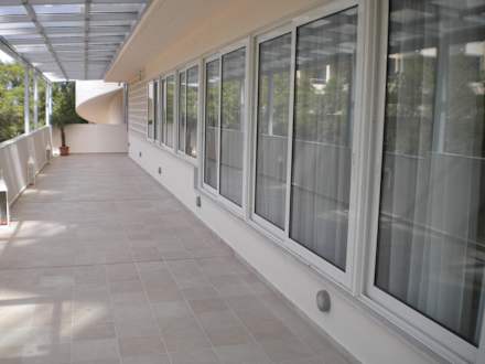Weg zum Zimmer, links Blick auf Baustelle