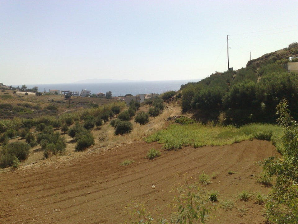 Ausblick aus dem ZimmerErst sieht man den schönen Garten mit Tomatenpflanzen und dann das Meer. :-) Traumhaft