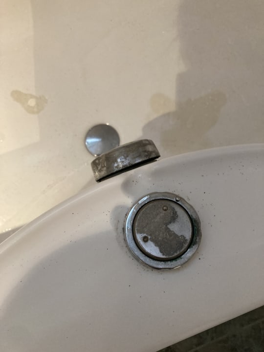 Kaputte, rostige Armaturen. Lack in der Wanne abgesplittert