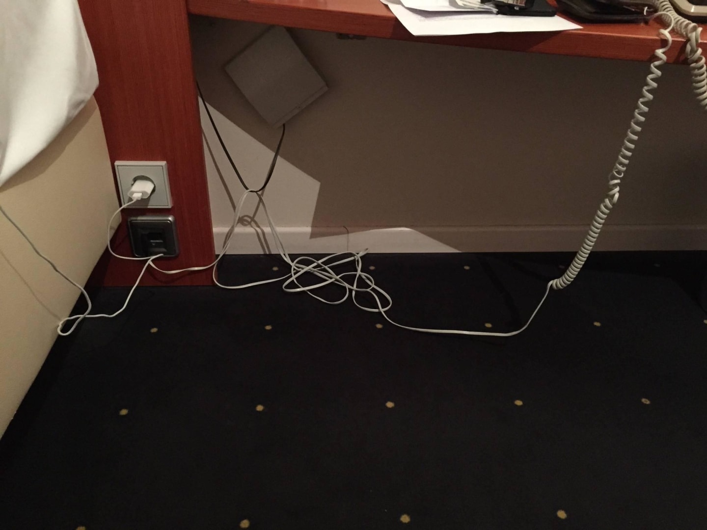 KabelsalatKeine Liebe zum Detail im gesamten Zimmer - denn Kunst wird das nicht sein vermute ich !