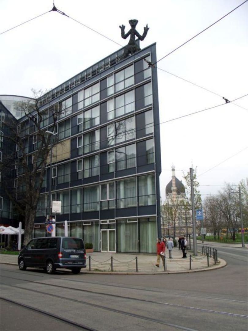 Art'otel DresdenAussenansicht des Hotels mit Skulptur von A.R.Penck auf dem Dach.