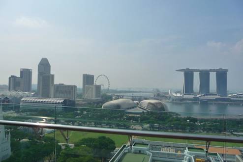 Der Ausblick ist großartig! Das größte Riesenrad der Welt und der imposante Hotelbau des Marina Sands. Sehr beeindruckend.