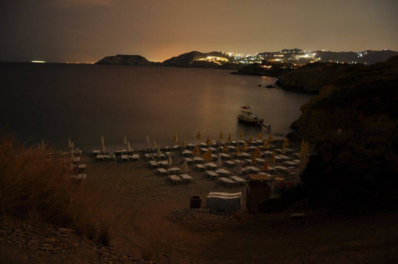 Plaża przy hotelu nocą