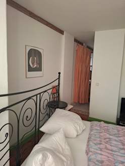 Im Hintergrund der Eingang zum Bad