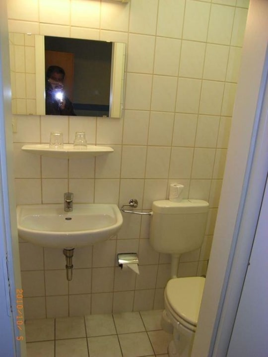 Im, sehr kleinen, Bad befindet sich kein Papierkorb, keine Möglichkeit das Duschtuch aufzuhängen und in der Dusche keine Ablagemöglichkeit für Dusch-Gel oder Shampoo