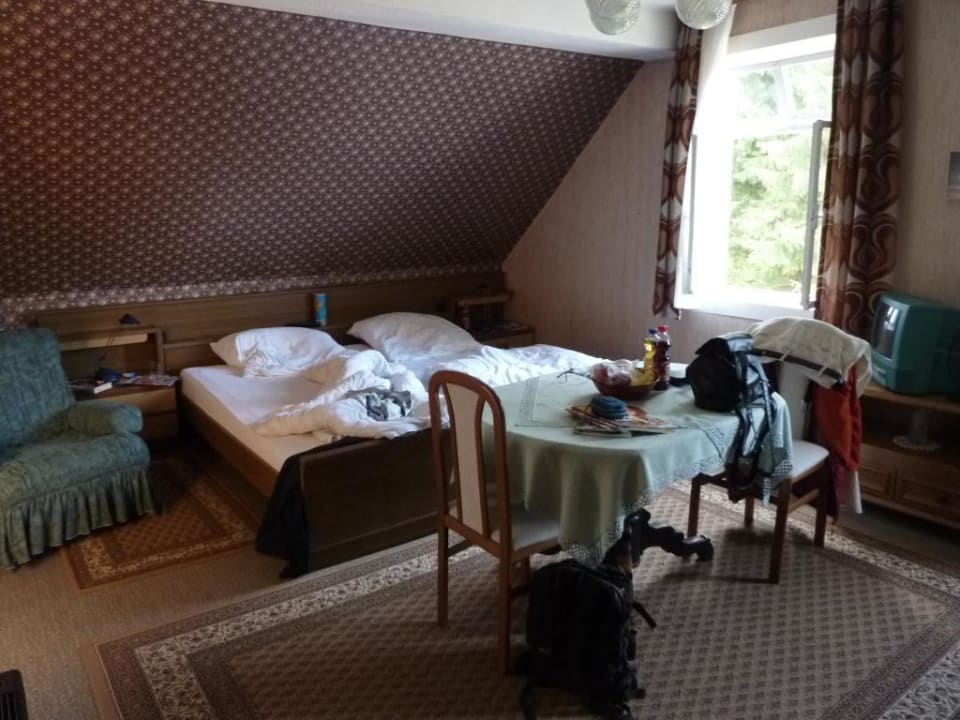 Blick aufs BettWilder Stilmix, "Anno dazumal", 70er, "Ich mag selbst nicht mehr drin wohnen, aber für den Sperrmüll ist`s eigentlich noch zu schade"