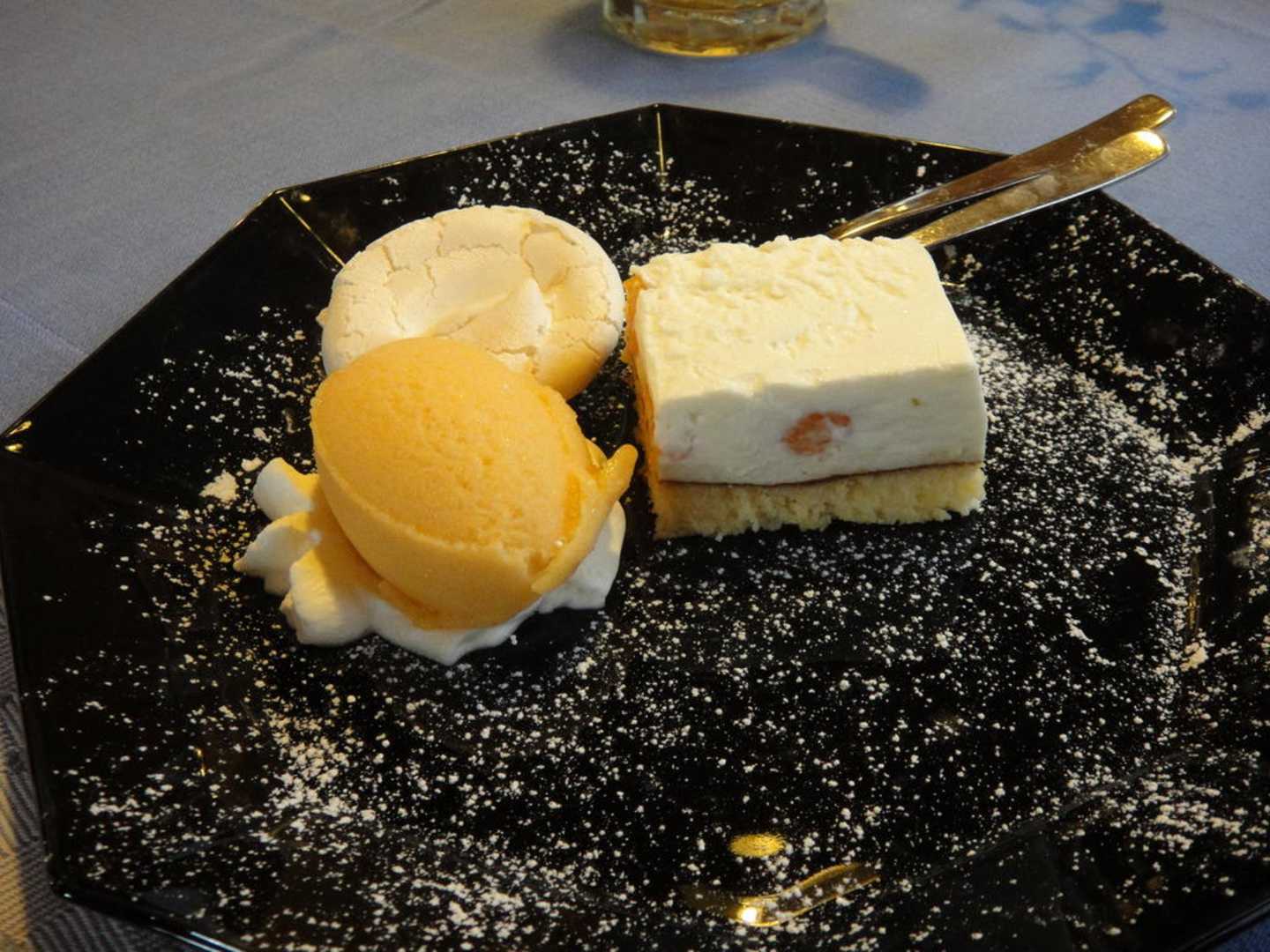 Joghurt-Limetten-Schnitte mit Aprikosen-Sorbet