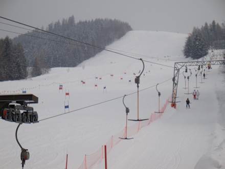 Ski Lift vor der Pension Anny, dort findet auch jeden Dienstag eine von Ski-Lehrern eine Veranstaltung statt, die man nur empfehlen kann, mit einem super Feuerwerk am Ende der Schow. .