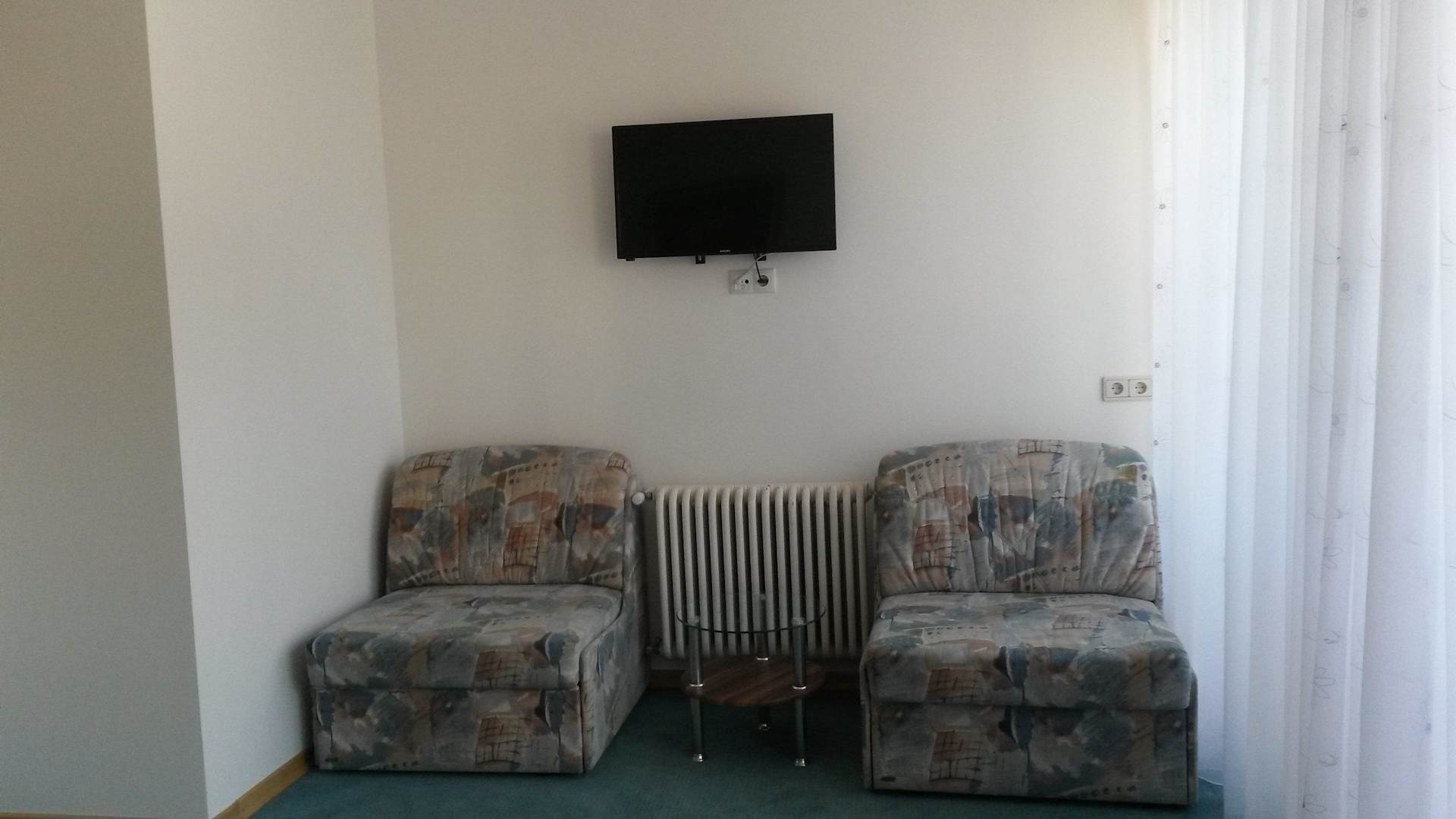 Fernsehecke vom Bett aus gesehen