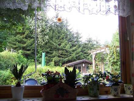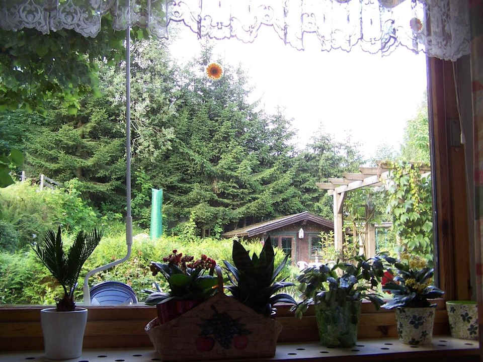 Pohled na zahradu z okna jídelny