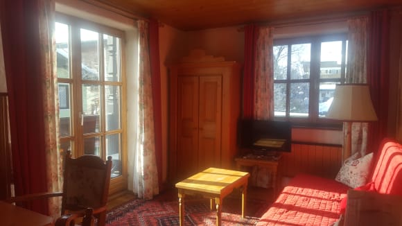 ZimmerSehr geschmackvoll gemütlich grosser teilweise überdachter Balkon Ambiente sehr romantisch viel Platz für Kleidung vollbiologische Möbel