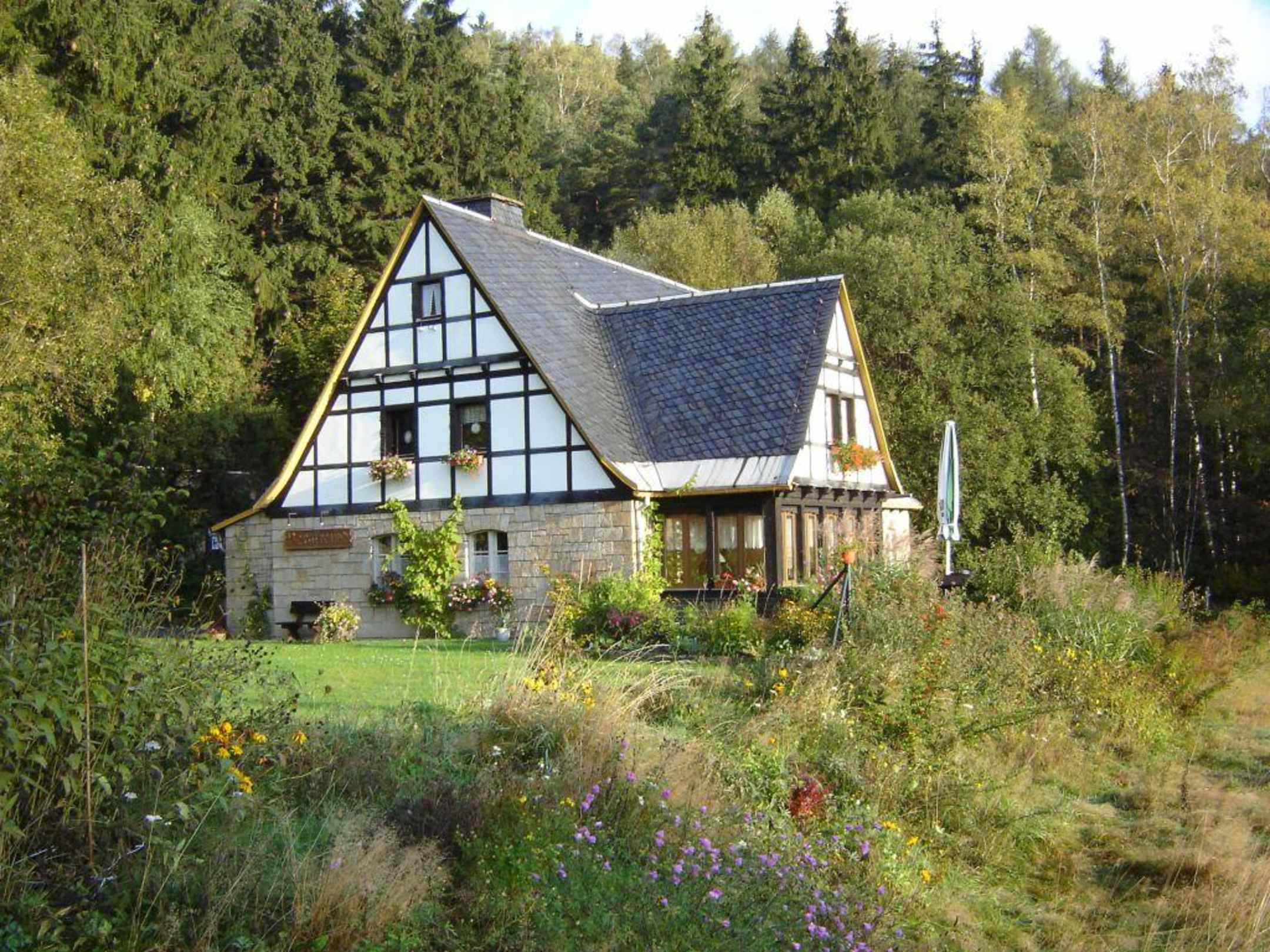 Ruhe und Erholung ist in diesem kleinen, gemütlichen Haus garantiert. Vor der Tür der Wald mit Wanderwegen, aber auch Gastronomie und Einkaufsmöglichkeiten sind in der Nähe.