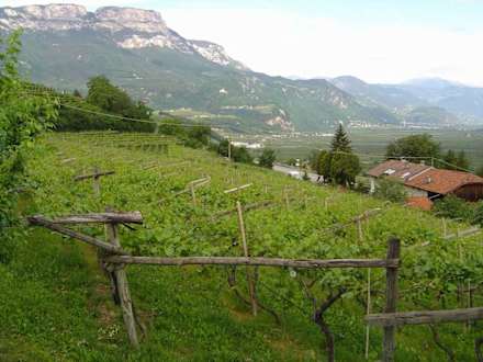 Pension EtschblickZu sehen ist eine Außenaufnahme der "Pension Etschblick" hier: Blick vom Eingang der Pension in die Berge.