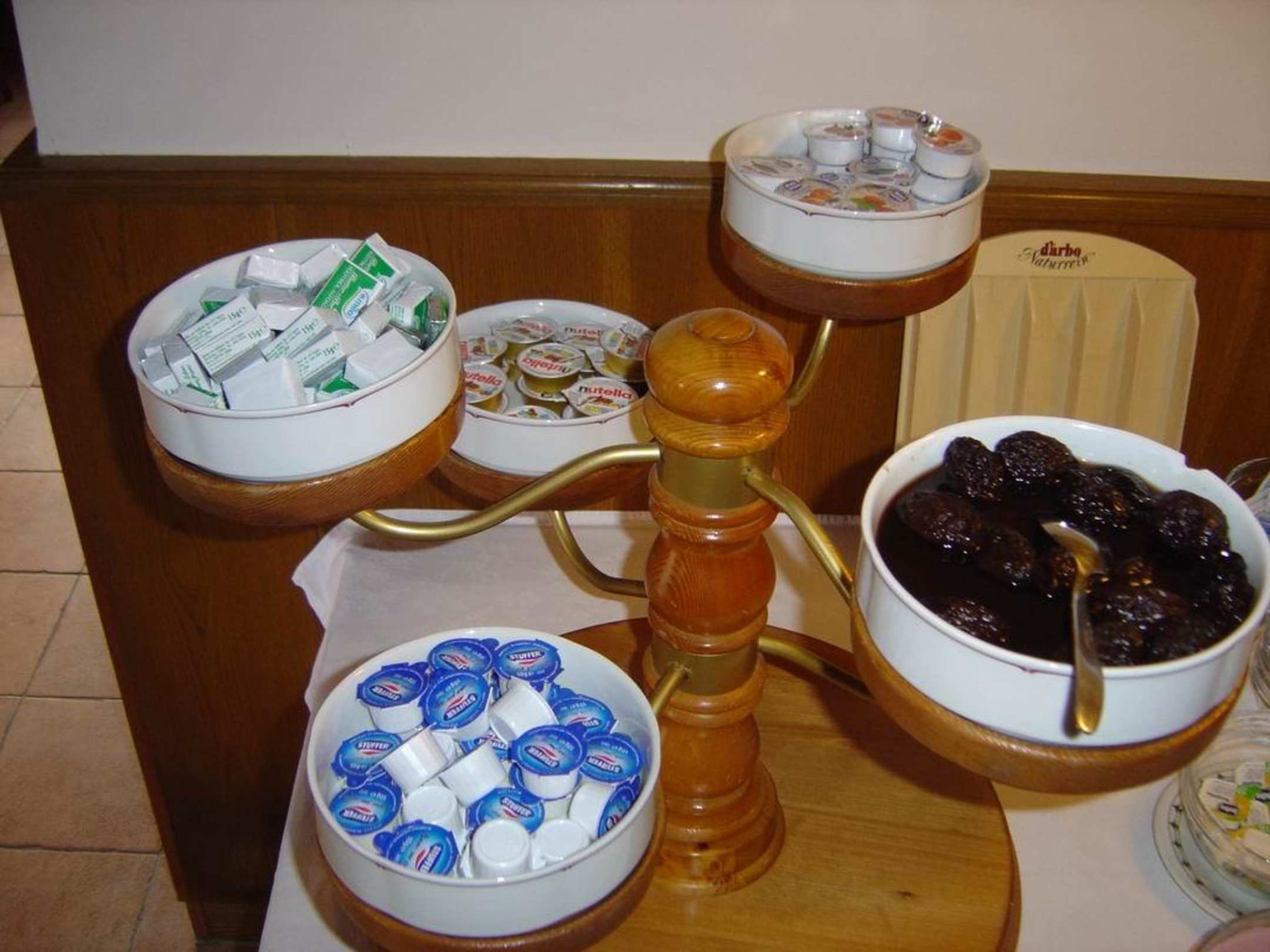 Zu sehen ist eine Innenaufnahme der "Pension Etschblick" hier: Beim Frühstück.