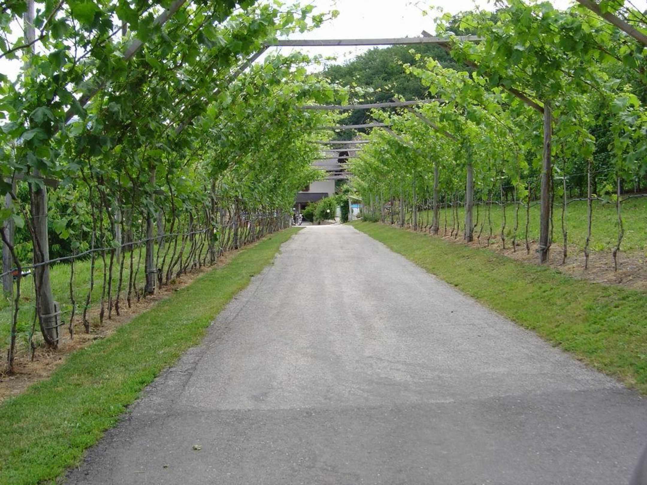 Zu sehen ist eine Aussenaufnahme der "Pension Etschblick" hier: die Zufahrt zur Pension.