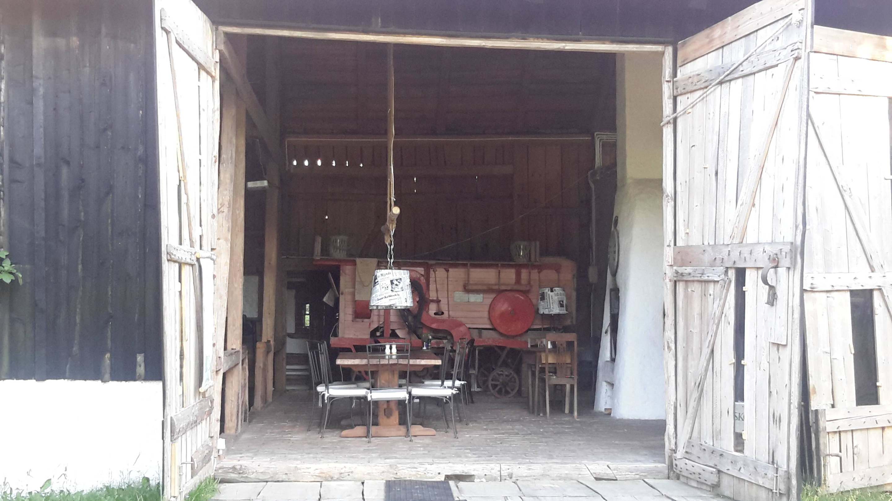 Offenes Scheunentor bei schönem Wetter