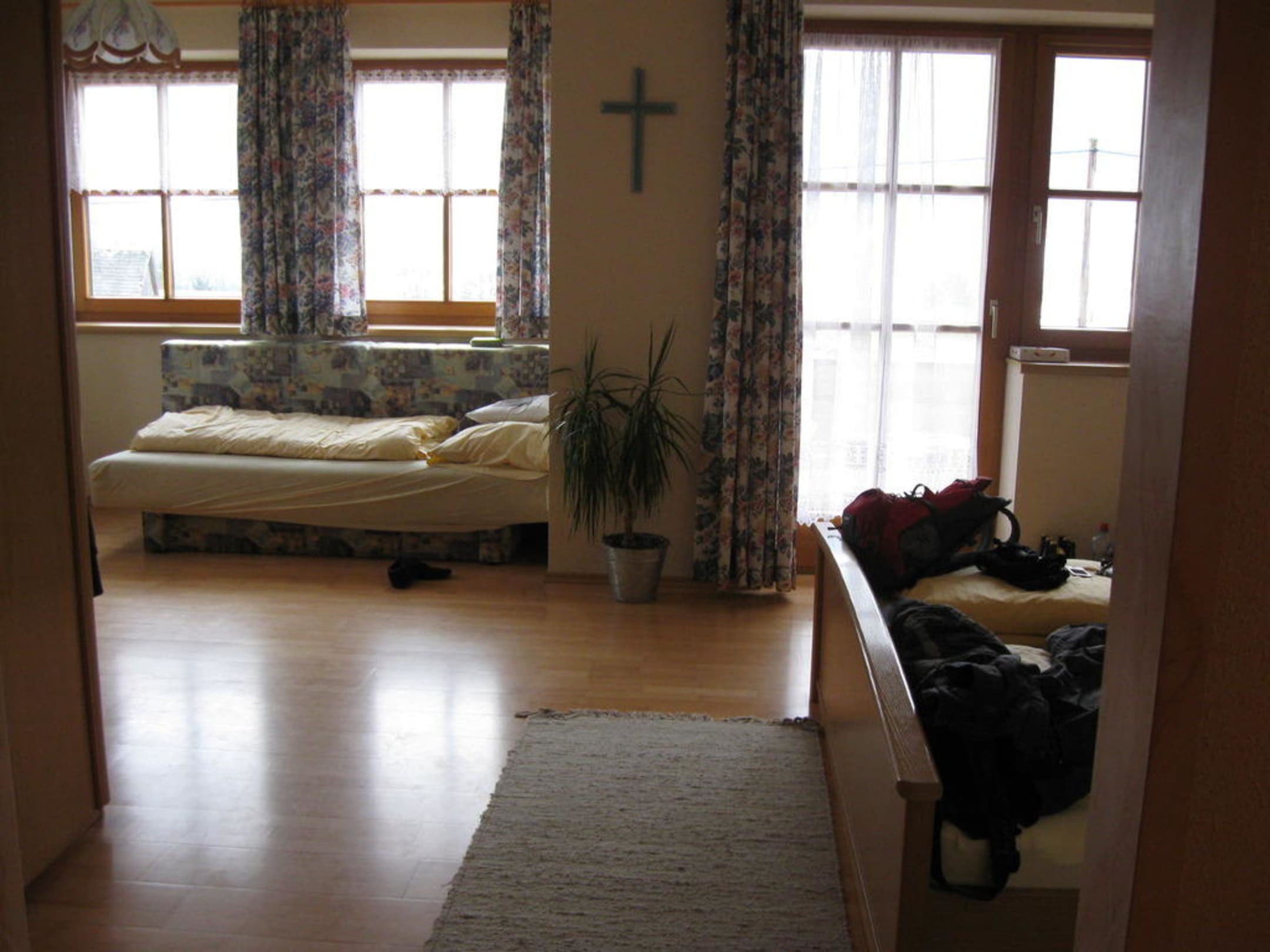 Blick auf das Zustellbett und Tür zur Terasse.