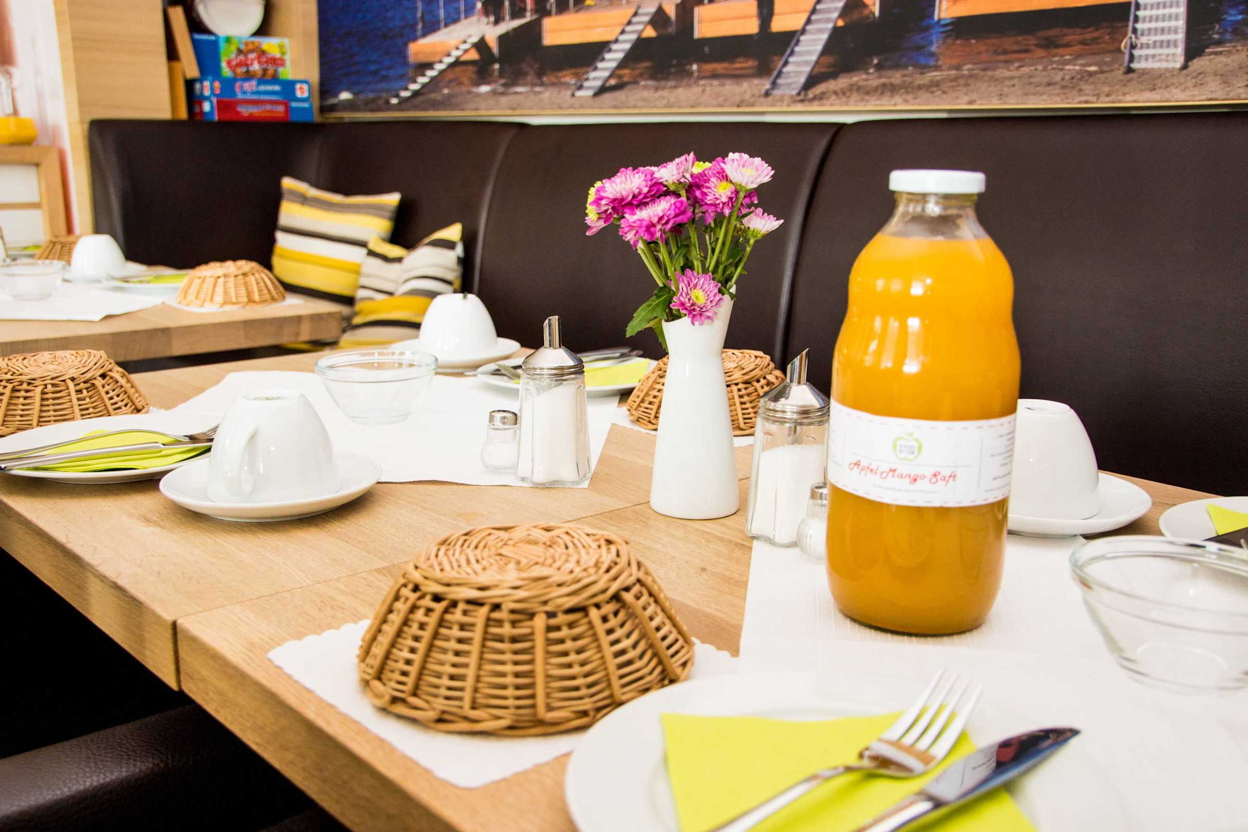Frühstücksbuffet mit Saft aus der Umgebung