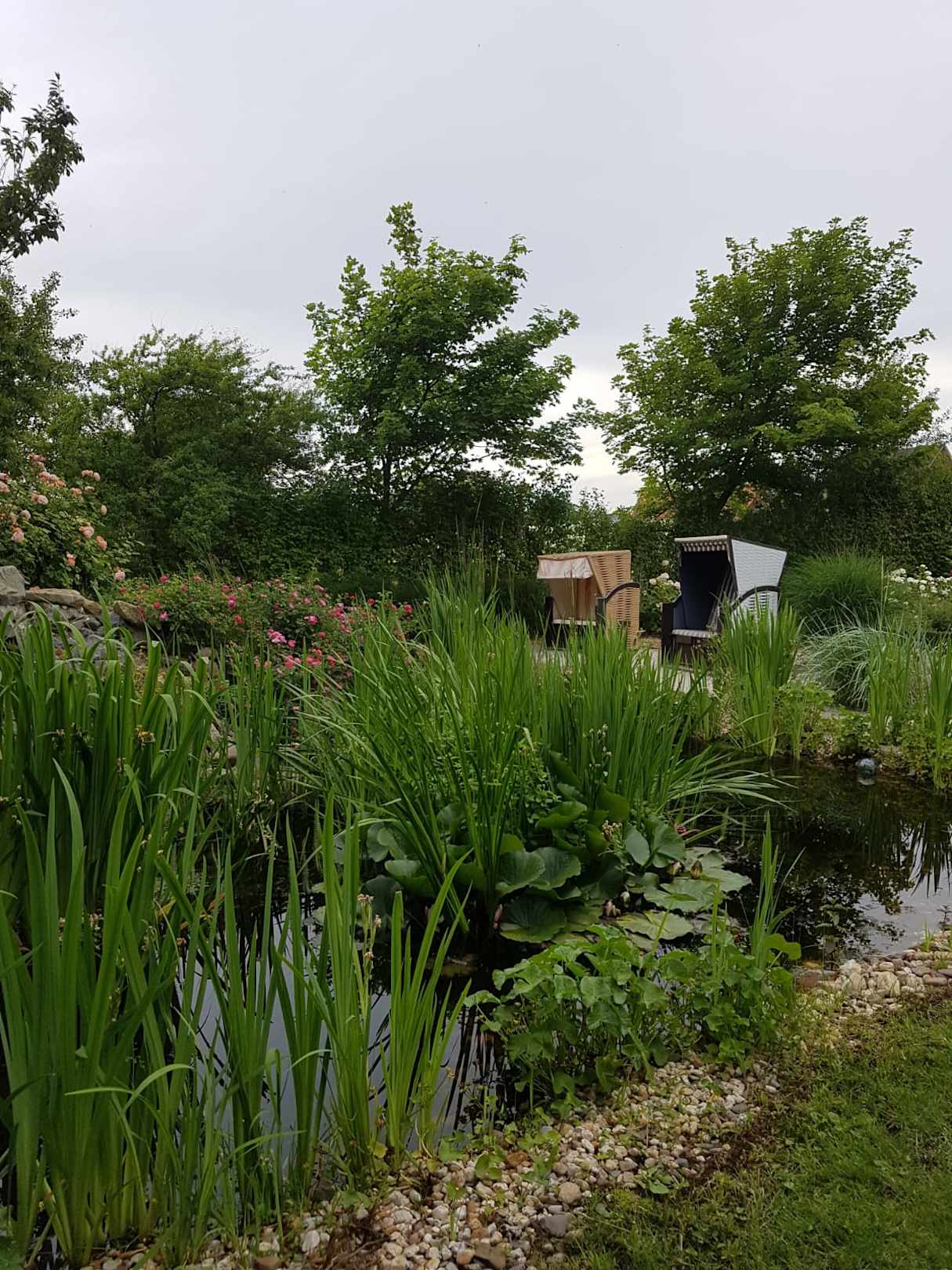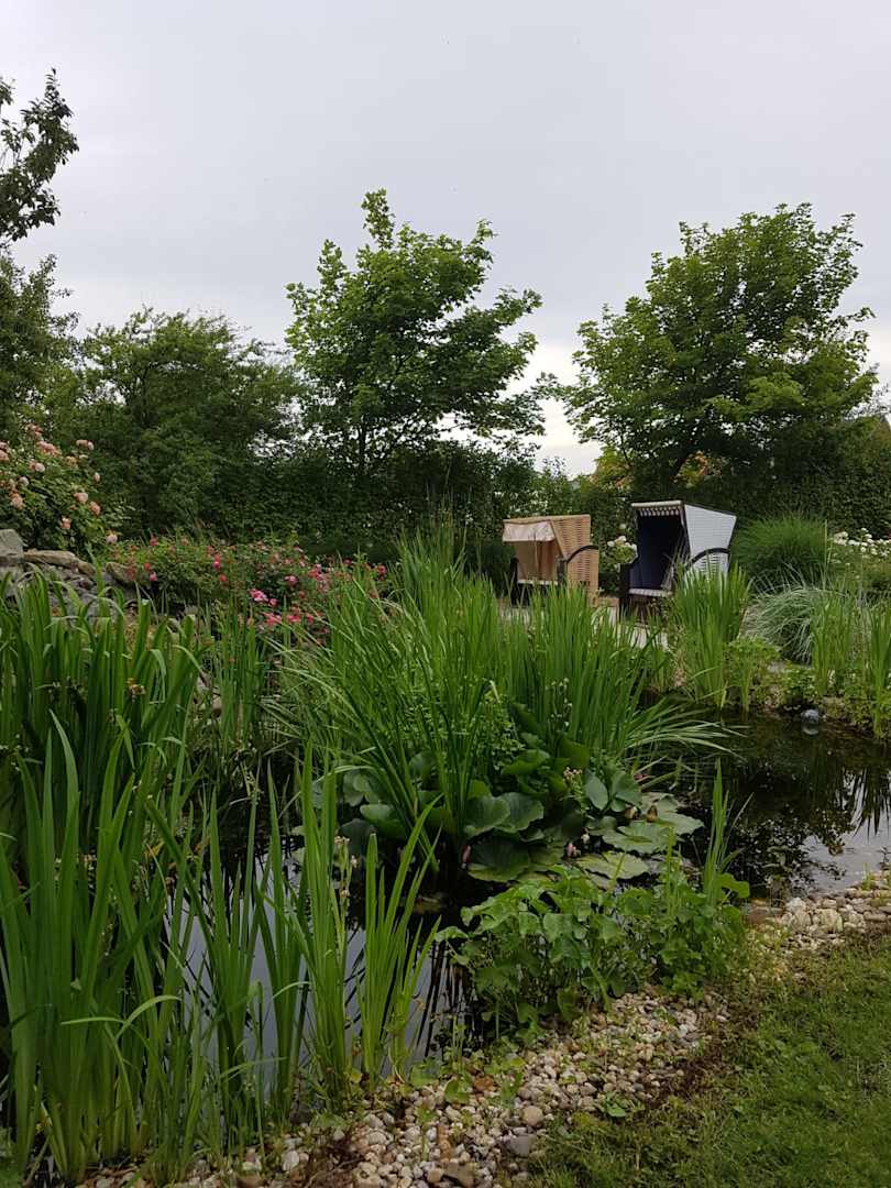 Ein traumhafter Rosengarten mit Gartenteich und 2 wunderschönen Strandkörben