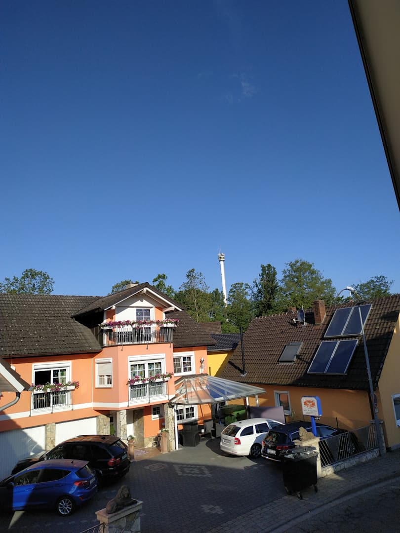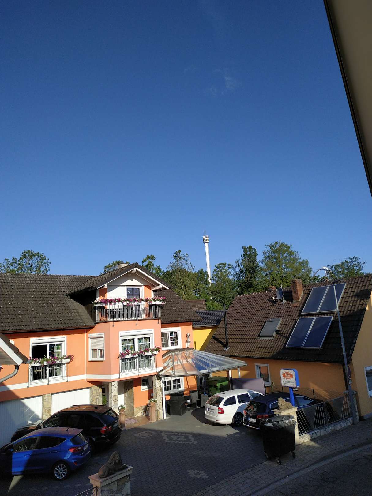 Das ist die Pension und man sieht schon wie nah der Tower aus dem Europa-Park ist.