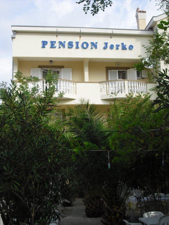 Blick vom Garten auf die Rückseite der Pensiondas sind die ruhigen Zimmer mit Blick auf den Oleander- und Palmengarten